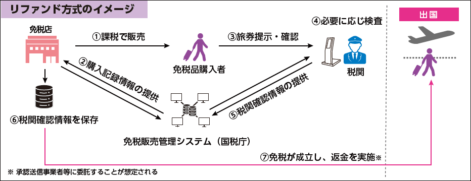 リファンド方式においては、税関で持出し確認が行われるため、免税店の事務負担軽減、